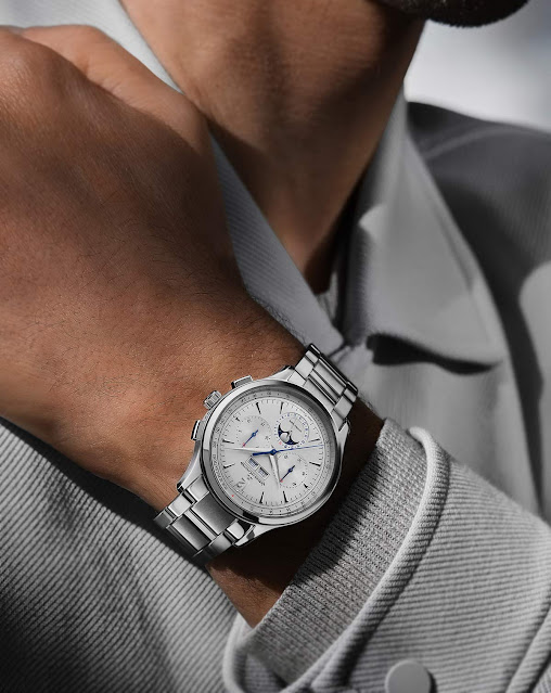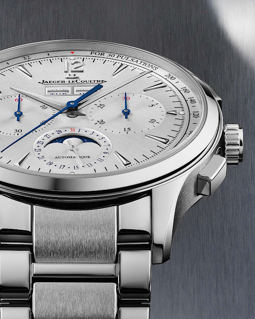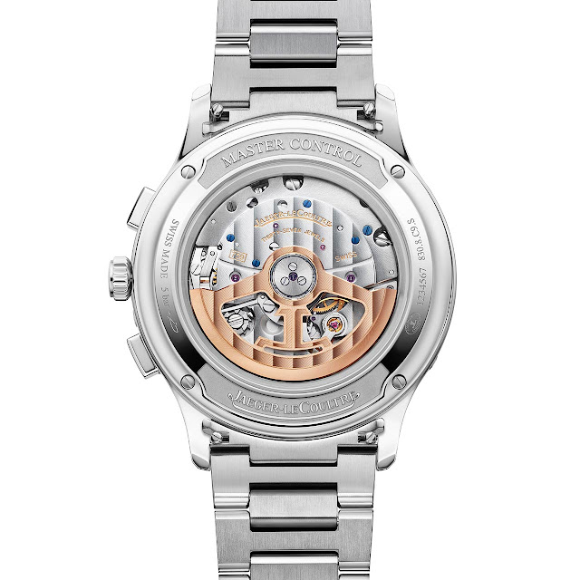 Master Control Chronograph Calendar tập hợp hai trong số những tính năng được đánh giá cao nhất trong sản xuất đồng hồ, một đồng hồ bấm giờ bánh xe cột và một màn hình ba lịch với các tuần trăng, một sự kết hợp lần đầu tiên có mặt trong bộ sưu tập Master Control vào năm 2020.