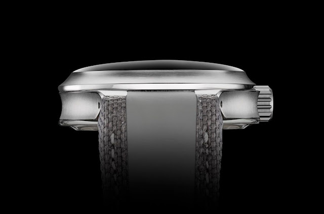Toàn bộ đồng hồ, bao gồm dây đeo, được đặc trưng bởi các sắc thái của màu xám để tạo ra hiệu ứng đơn sắc thanh lịch. Để cải thiện khả năng đọc, kim giờ và kim phút đã được sơn màu xanh nhiệt để nổi bật so với các yếu tố khác của mặt số.