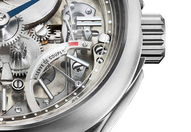 Thiết kế này đặt giờ và phút ở trung tâm của mặt số sapphire với kim giây treo trên cầu Tourbillon bằng thép được gia công mở ở vị trí 8 giờ.