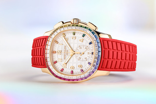 Patek Philippe đã làm phong phú thêm dòng đồng hồ nữ tính của mình với chiếc đồng hồ bấm giờ Aquanaut Luce “Rainbow” Ref. 7968 / 300R-001, chiếc đồng hồ bấm giờ Patek Philippe nữ tự lên dây cót đầu tiên.