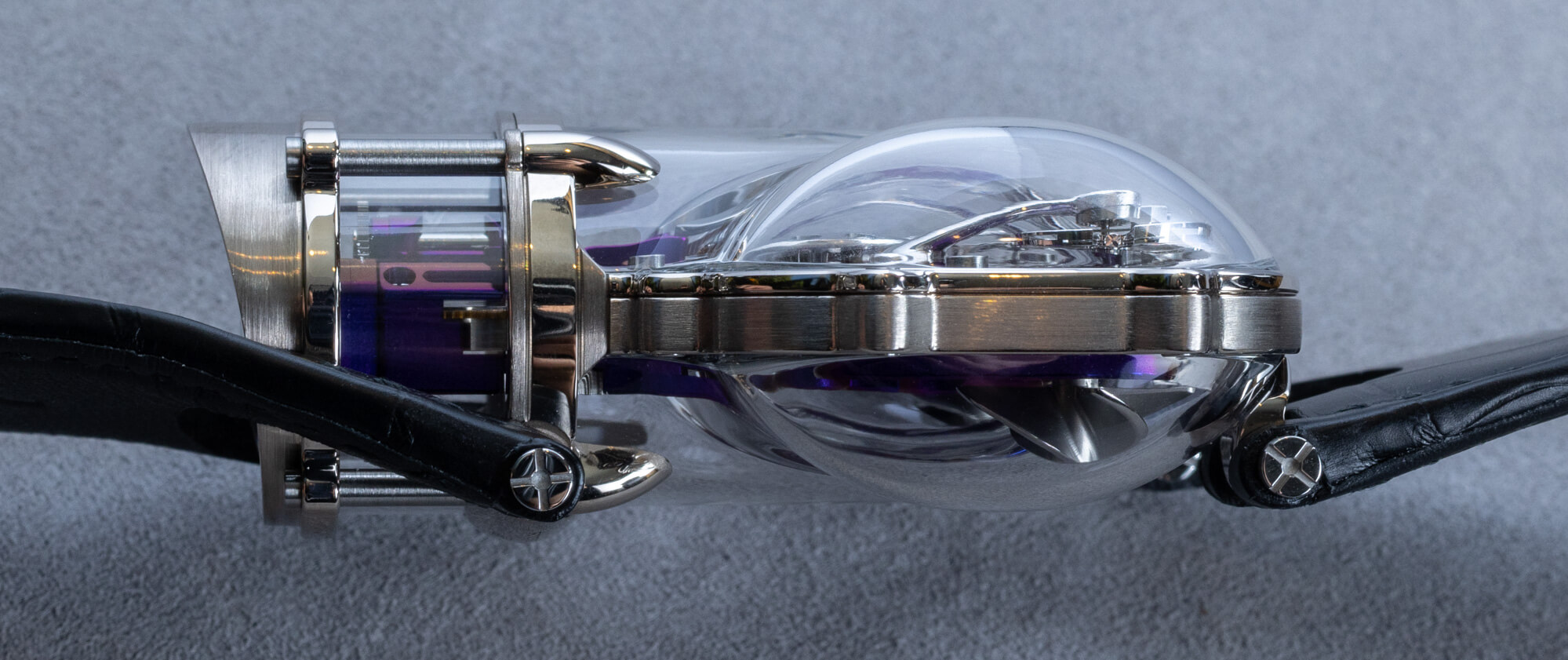 Trên thực tế, vỏ đồng hồ HM9-SV đeo kỳ lạ, nhưng thoải mái, mặc dù nó rất lâu về mặt thị giác. Và sau đó là vấn đề về hình dạng thú vị của nó cho thấy quả bóng MB & F thực sự lớn như thế nào. Chúng tôi có xu hướng nghĩ rằng thật tuyệt khi cùng một lúc một vật thể khiến những người đam mê đồng hồ trưởng thành như chúng tôi phải bật khóc vì cảm kích… và sau đó đồng thời đưa ra những câu chuyện cười bất tận về sự đa dạng sơ sài dựa trên hình dạng gợi ý của nghệ thuật cơ khí đeo được này cho cổ tay.