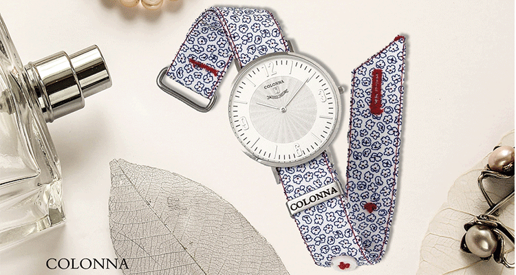 Tuyển chọn những mẫu dây vải đẹp nhất đa dạng về họa tiết. Các phụ kiện về dây vải được kết hợp màu sắc lấy cảm hứng từ những trào lưu văn hóa lớn trong lịch sử Italia như La Mã, Phục Hưng, Baroque. Đồng hồ thời trang Colonna có phong cách thiết kế mang dáng dấp từ những công trình nổi tiếng đế quốc La Mã xa xưa, từ cảm hứng hoài cổ từ thời kỳ Phục Hưng, đến họa tiết tinh xảo trừu tượng . Sản phẩm thấm đượm tinh hoa văn hóa đất nước màu áo thiên thanh