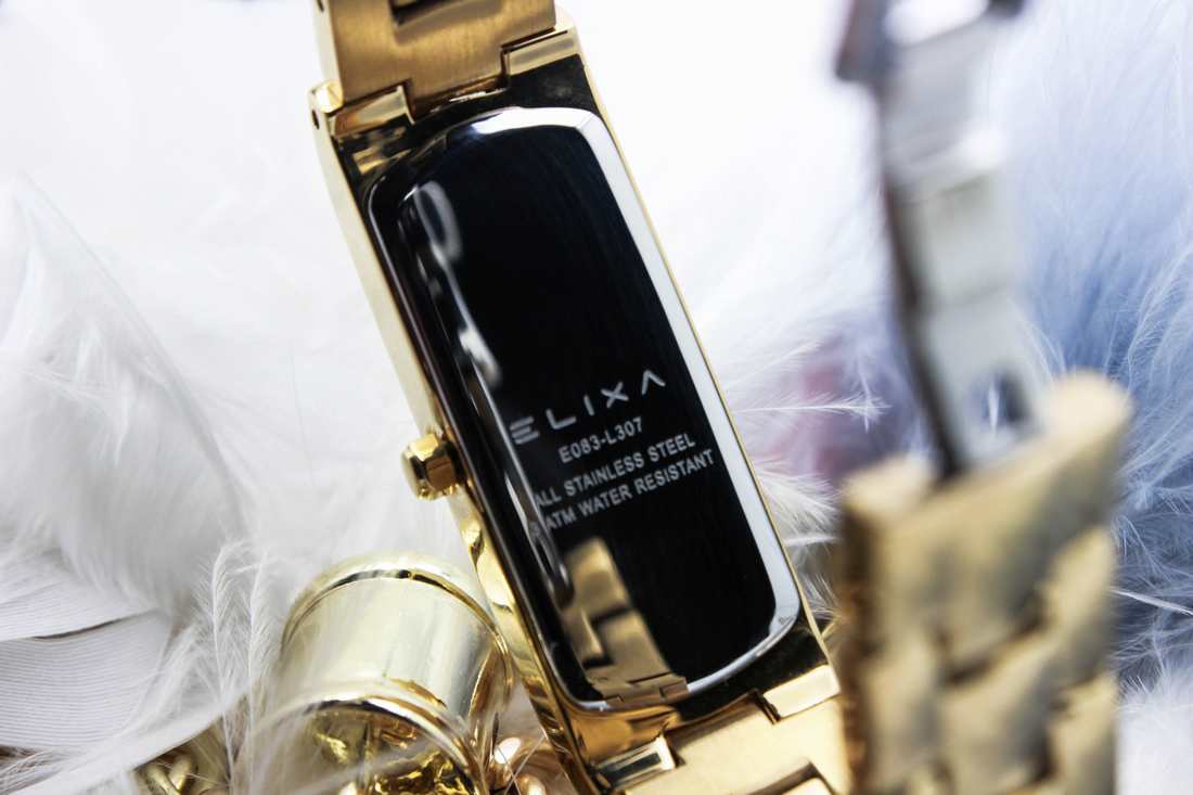 Sự tương phản được Elixa sử dụng triệt để cho dòng đồng hồ Finesse, như để tạo sự vừa vặn và dễ kết hợp với nhiều phong cách thời trang của phái nữ. Mặt số đồng hồ hình chữ nhật to bản và dài, nhưng tương phải với nó là mặt số nhỏ.