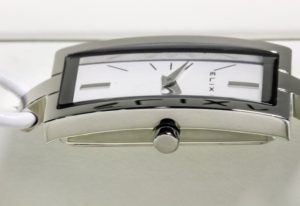 Điều này không chỉ tạo sự mới mẻ cho đồng hồ mà còn giúp tạo thêm những hoa văn nhỏ xinh như chữ E của Elixa trên nút chỉnh dây đeo cao su. Quai đồng hồ được thiết kế mỏng và thanh lịch, tách biệt với mặt số to để tạo thêm vẻ tinh tế.
