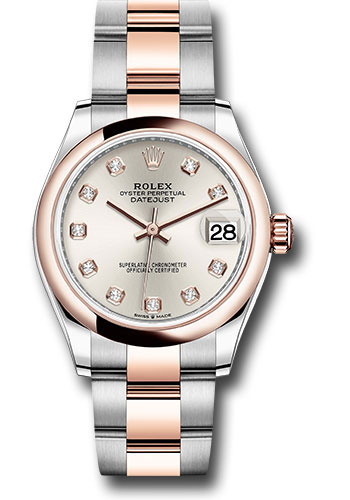 31mm Everose Rolesor case comprised of Oystersteel and 18K Everose gold, screw-down back, screw-down crown with twinlock double waterproofness system, 18K Everose gold domed bezel, scratch-resistant sapphire crystal with cyclops lens over the date, silver dial, diamond hour markers, Rolex calibre 2236 perpetual self-winding movement with date at 3 o’clock, approximately 55 hours of power reserve, Eversose Rolesor Oyster bracelet made from a combination of steel and 18K everose gold with flat three-piece links, folding Oysterclasp buckle with Easylink 5mm comfort extension link. Waterproof to 100 meters.