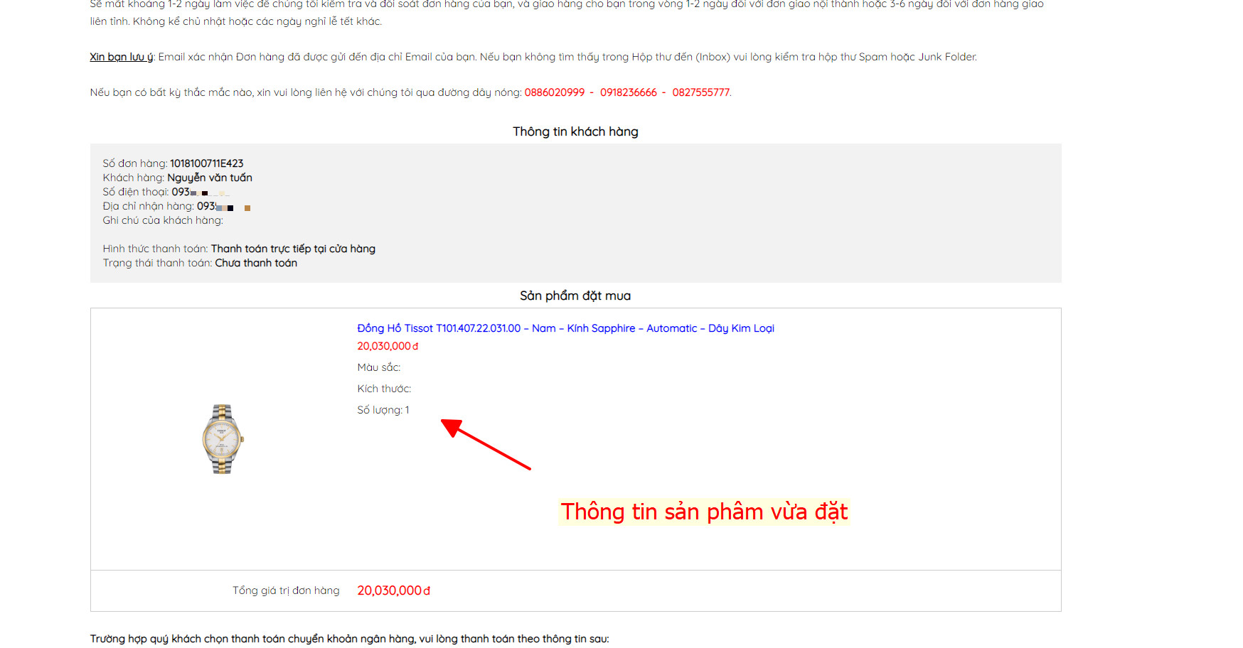 Cách 1: Gọi điện thoại đến tổng đài 088.6020.999 từ 7g30-22g (cả CN & ngày lễ) để đặt hàng, nhân viên chúng tôi luôn sẵn phục vụ, tư vấn và hỗ trợ quý khách mua được sản phẩm ưng ý.